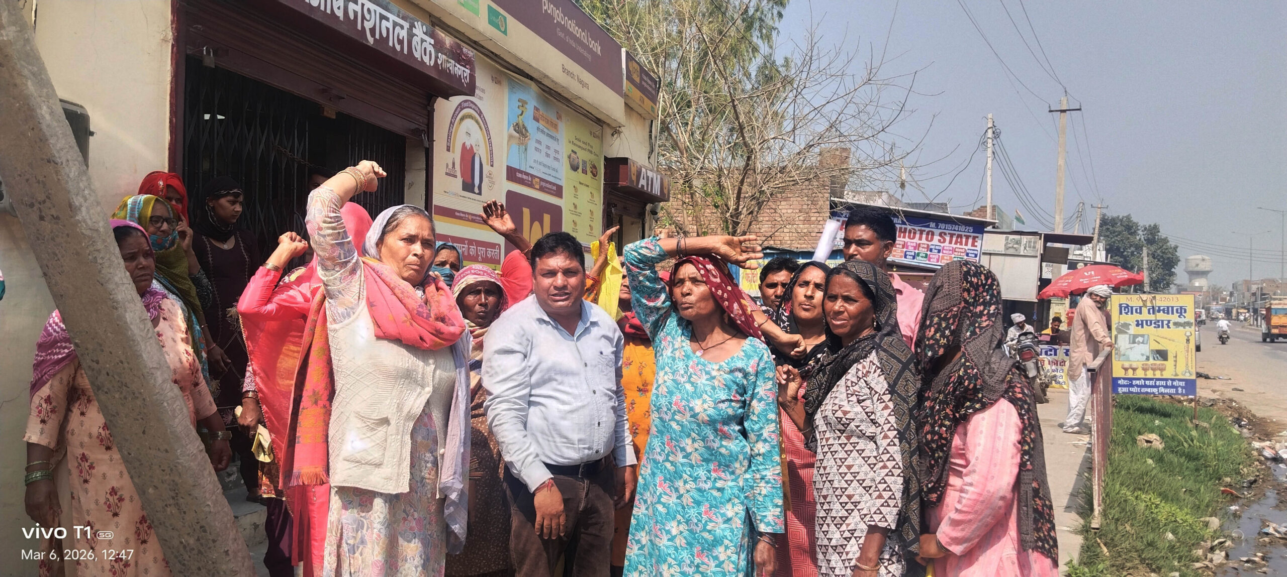 महिलाओं ने बैंक प्रबंधन के खिलाफ की नारेबाजी pension issue women protest